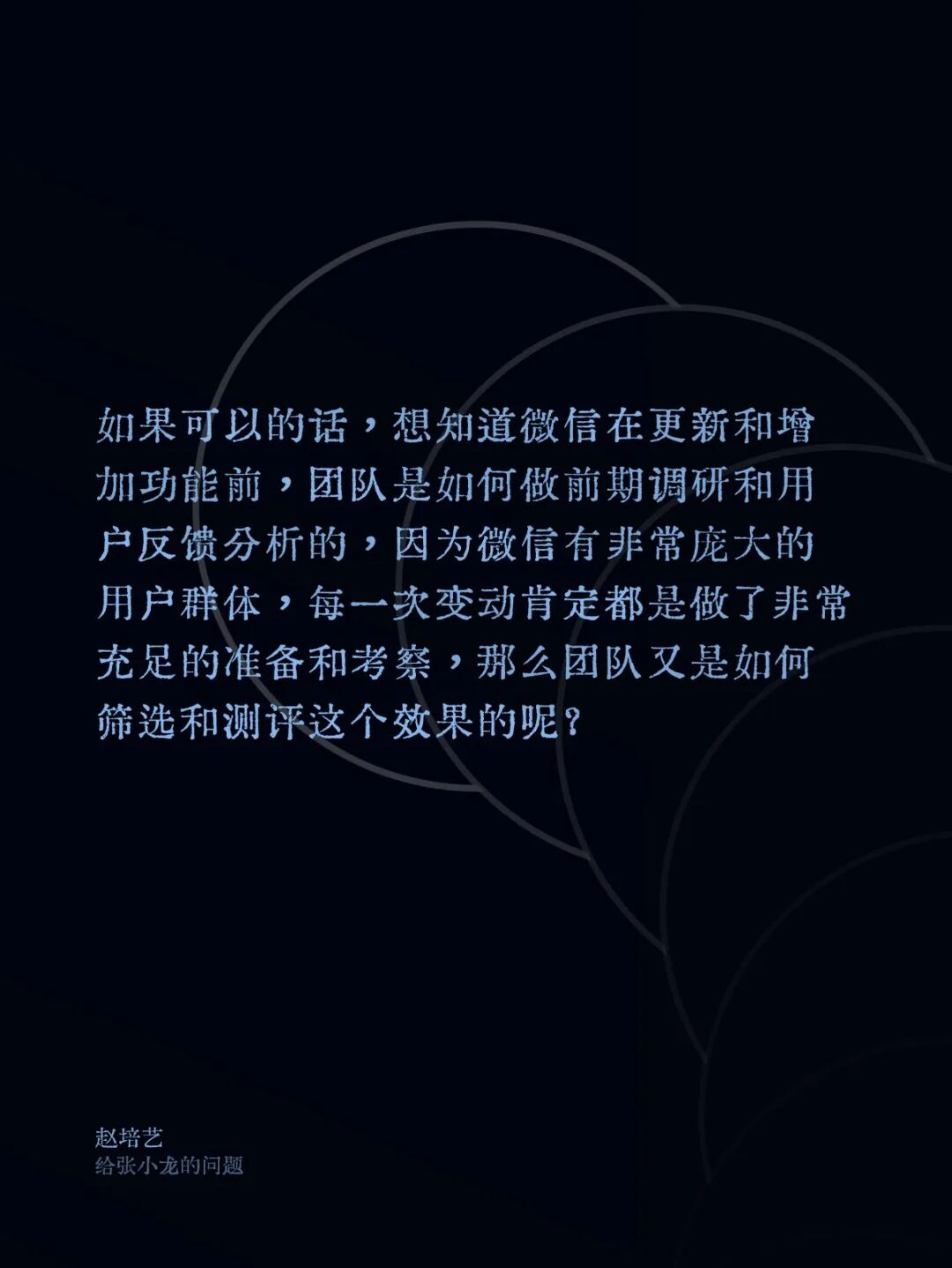 他希望创造一个机会,让初出茅庐的学生也可以对微信这样的国民级 APP,它所代表的业界通行理念、惯例、方法,去做针对性的批判和优化。