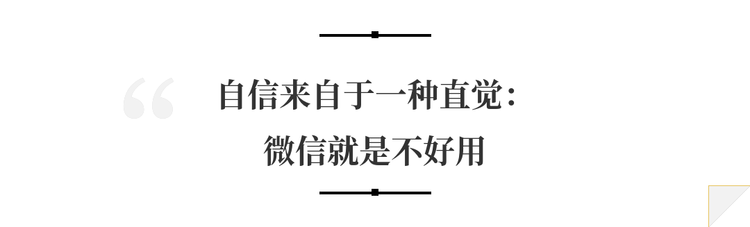 自信来自于一种直觉:微信就是不好用。十几亿用户,男女老幼,每个人都有想吐槽的点,对它来一次“爆改”,岂不是天经地义?