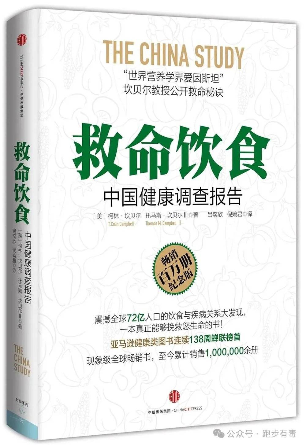 如果你留意会发现,这本书是基于1983~1989年间的一次在中国的大型研究写成的(原书名是The China Study),主要观点大概是那时候中国人身材瘦削,爱走路和骑自行车,他们的癌症、心脏病、糖尿病、多发性硬化病、肾结石、骨质疏松症、高血压、白内障和老年痴呆症等西方高发病的患病概率极低,所以柯林·坎贝尔教授主张,要像中国人一样,饮食要以植物性食物为主,最有利于健康,也最能有效预防和控制慢性疾病,即多吃粮食、蔬菜和水果,少吃鸡、鸭、鱼、肉、蛋、奶等。
