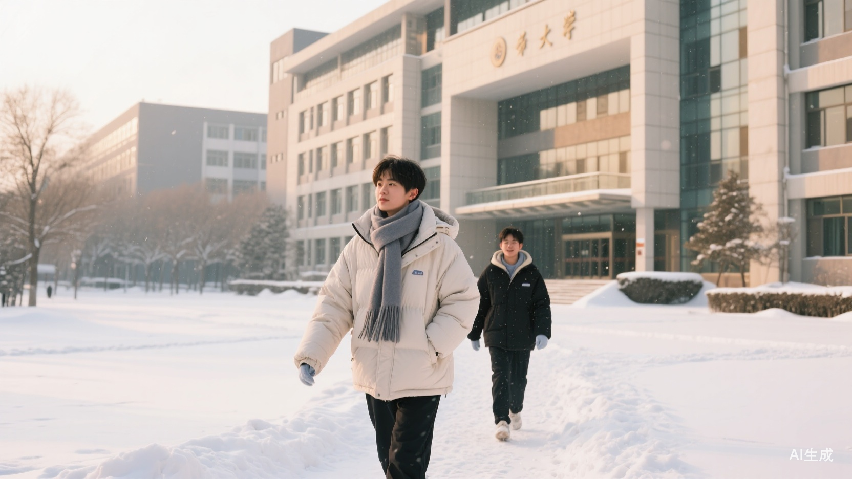 ■善谈的Tom特别喜欢这张照片,说要放在文章里(左)。右图是他昨天刚拍下的积雪皑皑的校园。
