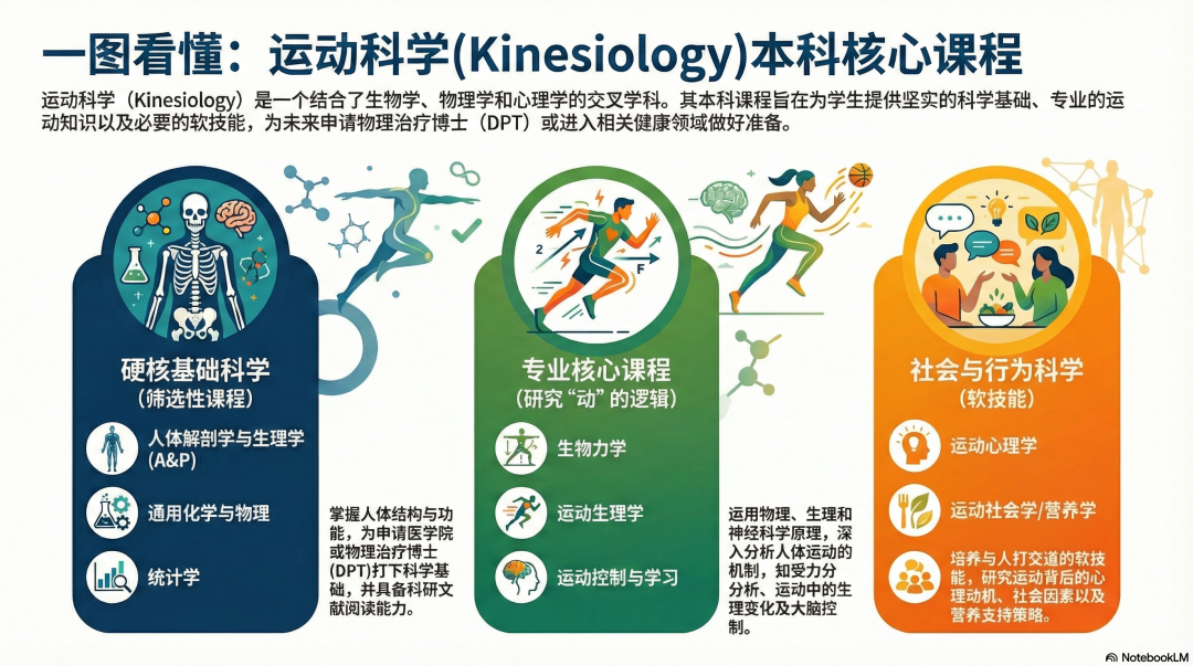 一句话解释就是,「它是连接医学和体育的黄金桥梁」。它不是教你怎么打篮球,而是研究人体动力学、解剖学、运动生理学的硬核科学。
