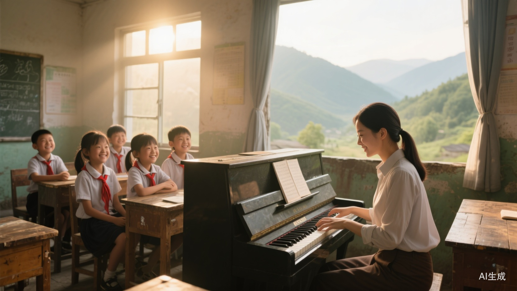 这部作品一个重要的线索,是作者对教育问题的思考。丁捷提出了一个有关教育的时代之问:“一个人可以怎样被塑造,并塑造得美好,塑造得有价值?”作者从俞晓冬的精神成长史和她的教育教学实践中得出这样的结论:“爱的植入,文学艺术的催发,有信仰的奋斗和有价值的成功,使得有限生命行程内可以作出无数的精彩绽放。”俞晓冬将自己的成长体验融入教学中,十多年在大别山传授艺术,但真正传递出去的,不只是艺术本身,更有爱,有智慧,有更先进的文明方式与理念。她上音乐课不单纯是教音乐,而是以音乐为载体,塑心、育人。她大量阅读学习儿童心理学、教育学,践行“美和爱”的教育理念,她以类似田野调查的方法,从“人、环境、情感”三个层面,实践、探讨音乐是怎样与这些元素交互的,音乐的力量在其中发挥了什么作用。她还尝试实践“跨学科教学法”“情感育人教学法”等等,在一个物质条件受限、资讯条件受限、生活方式却很单纯的环境中,打造出了一个以纯粹的美学体验、交流和分享为主的音乐课堂。她通过实践和摸索,积累了一个个成功的教育案例,言传身教,通过音乐教育让一个个学生直起身子,焕发出勃勃生机,绽放出美丽的光彩。可以说,“美育”和“爱的教育”的理念和教育实践,是俞晓冬作为教育者形象的两个重要支柱,人们在这个形象身上时时会感受到一种“爱的力量”和“艺术的力量”,这也是俞晓冬这个艺术形象的价值意义之所在。作品的结尾有一段话点题:“美乐畅响,笑容就能灿烂;有爱付出和轮回,生命就能延续;精神饱满坚定,信仰就能燎原;心中有诗,人生就可以奔赴远方,更可以把远方变成美情美智的诗意梦想。”我认为,这也是作者对自己教育哲学的一种表白。作者在对一个支教故事所作的发掘和提炼中,植入了他自己对教育所作的深层次思考以及对“美育”和“爱的教育”的独到见解。