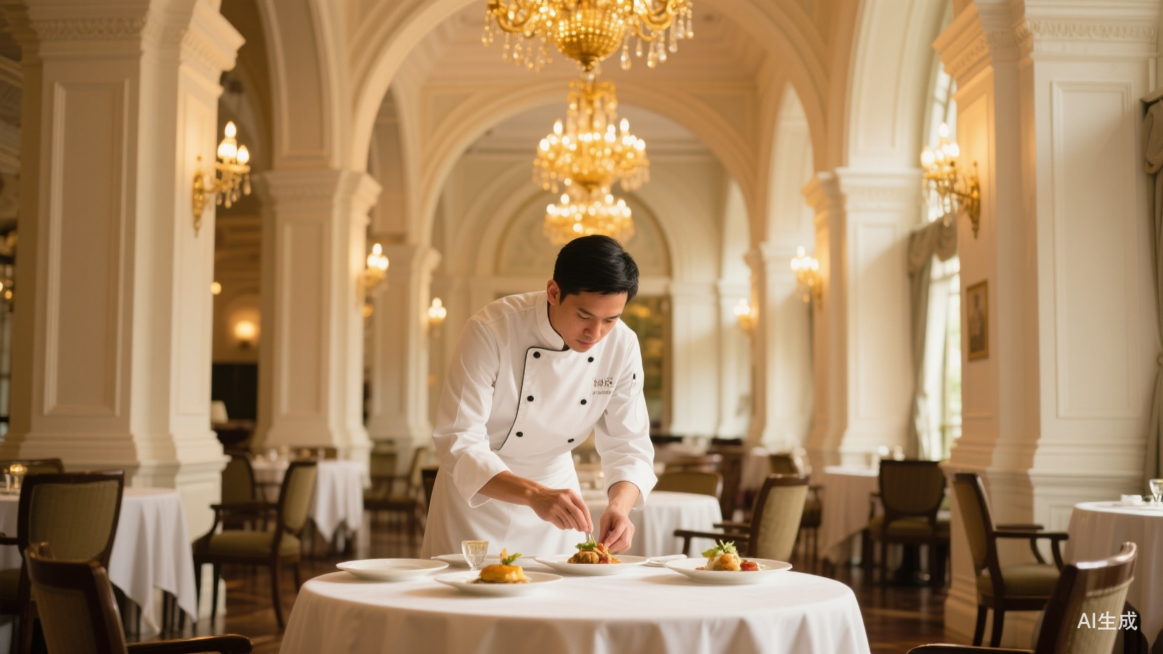 菜单方面,江振诚及其团队通过研究酒店的历史餐饮档案,甄选新加坡本地当季食材,运用法式烹饪技艺对经典菜肴进行重新诠释,在文化、技艺与美食的交融之间,展现酒店自19世纪至今的演变历程。