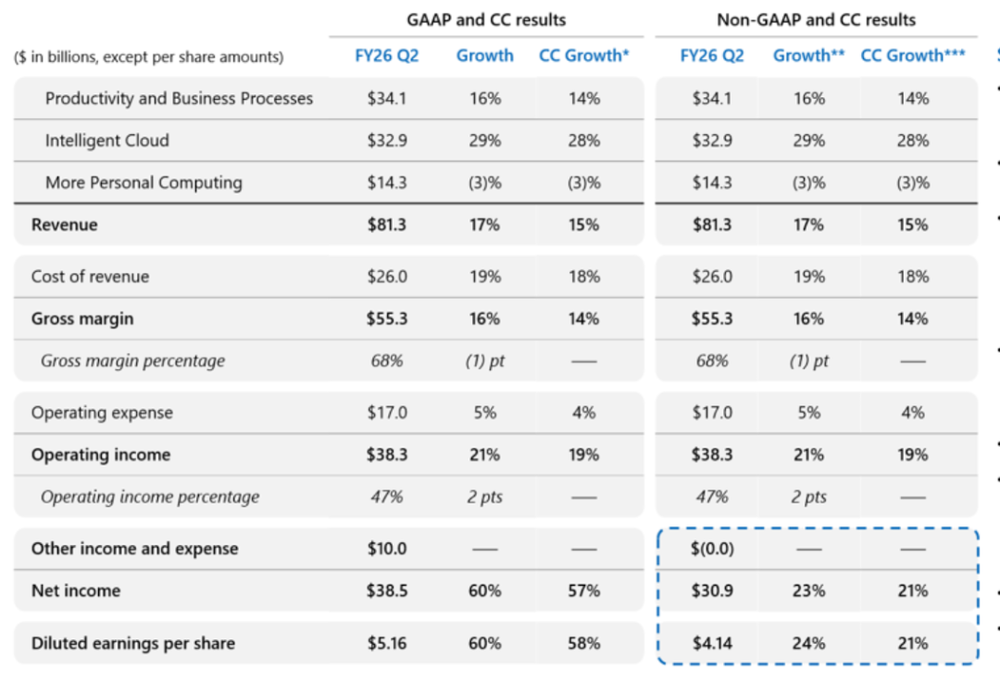 美东时间周三盘后,微软公布其截至去年12月底的第二财季财报。