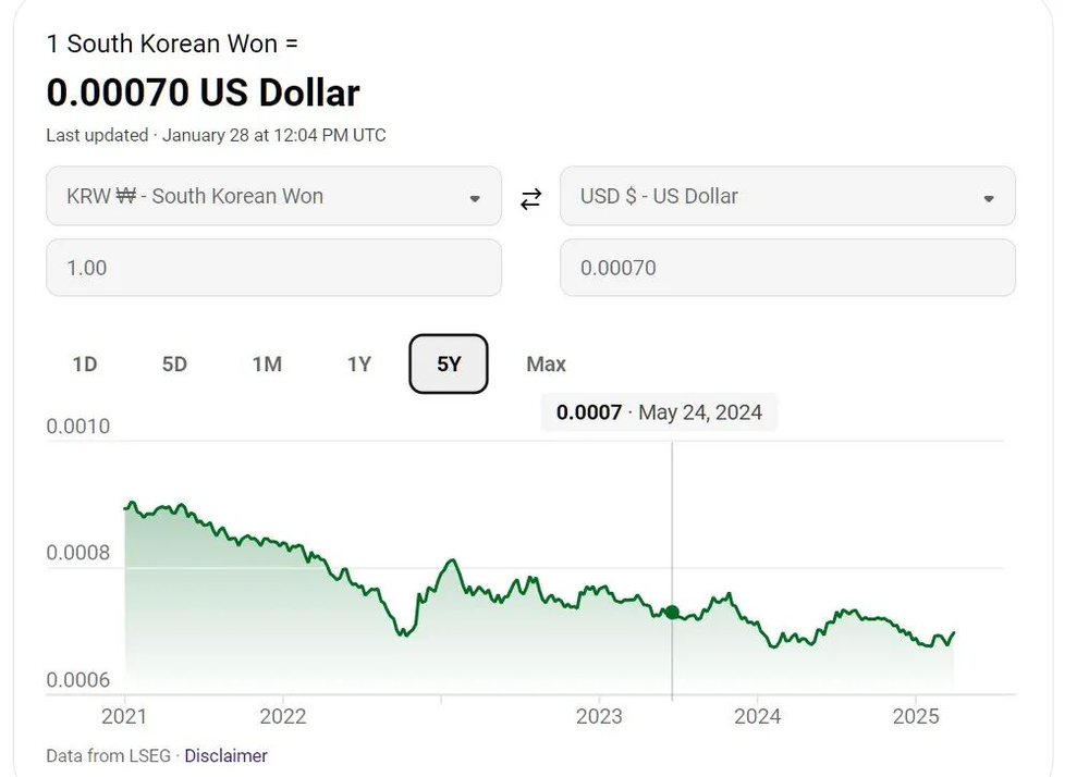 而且从全局看,韩元不仅仅是处于近几年的历史地位,关键是韩国政府已经基本把工具箱掏空,从股市禁止卖空到对汇市加强管理,仍然无法挽救韩元的颓势。美国政府在这种时候对韩国趁火打劫,完全是赤裸裸的讹诈。