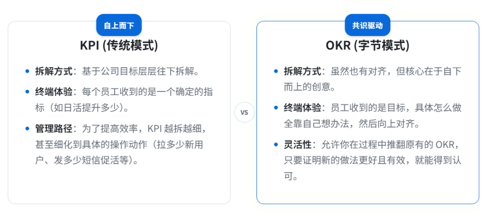 那么,字节依托“自由市场”这套机制,完全可以将一个需要两三年打磨的动作,拆解成每两个月一次的OKR,驱动团队找到比对手更优、更快的路径。