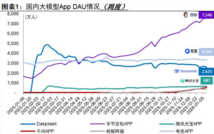 1、个人使用频率,ChatGPT>Gemini>豆包,DeepSeek、元宝、千问、文心都不在日常使用范围。这是从2023年初ChatGPT刚出来,一直到今天,不断尝试使用,最后形成的使用习惯。我的使用习惯和这几家产品的用户量基本对应,从DAU看,ChatGPT 4.2亿遥遥领先,后面是豆包的7500万,Gemini的7300万,剩下的都差了很远,夸克3300万用户里,应该有很多是之前浏览器的用户,不能完全算。