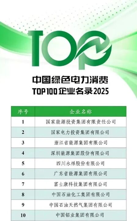 2025年9月,中国电力企业联合会发布了“中国绿色电力(绿证)消费TOP100企业名录”。从这份榜单中可以看出,能源行业与高耗能制造业构成了绿证消费的主力军。