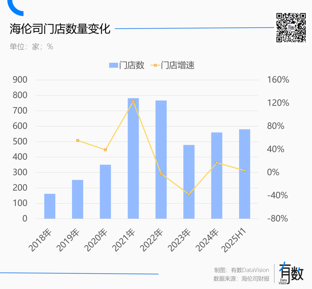 海伦司最初采用全直营模式,2021年海伦司登陆港股,在招股书里提出了“2023年开2200家直营店”的目标。结果一上市就撞上疫情反复,22-23两年反而闭店303家。