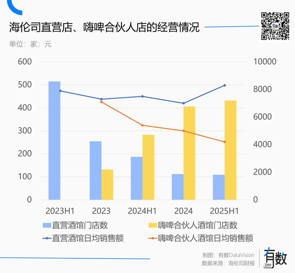 无独有偶,头顶“小酒馆第一股”的海伦司上市四年,营收一路下滑,从2021年的18.36亿元腰斩至2024年的7.52亿元;门店数从782家缩减至今年上半年的580家;市值蒸发九成以上。