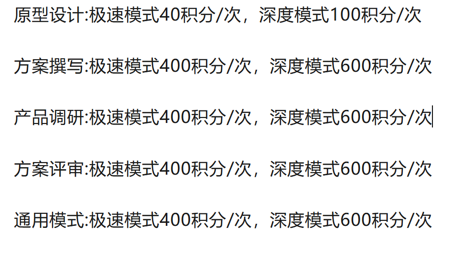另外我没注意,让它搞了一个方案撰写和产品调研,说实话,没有超出和其它大模型对话框的水平,我没注意几次就把积分消耗光了,效果难平。