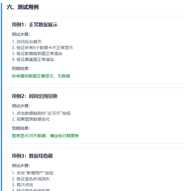 它按照页面概述、模块划分、模块详细说明、字段、交互逻辑、API接口、通用规则、开发注意事项、测试用例都搞出来了,而且非常详细。