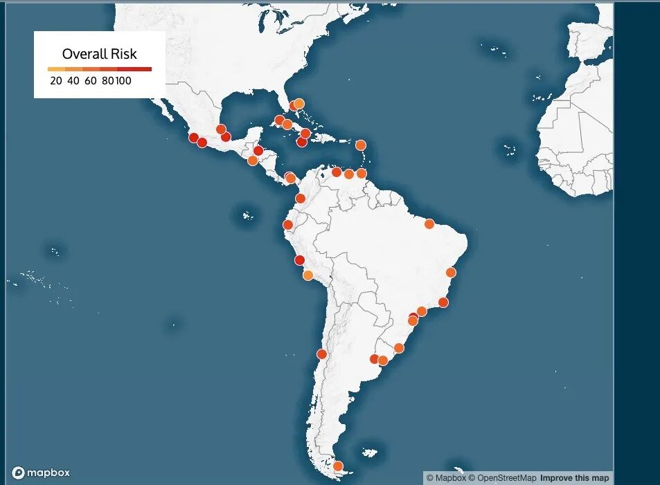 墨西哥韦拉克鲁斯港得分64.7分,位居风险榜第三位。与曼萨尼约港类似,该港口设有长江和记运营的码头,中国港湾工程有限责任公司和被美国制裁的中国交通建设公司近年来均参与了港口扩建工程。