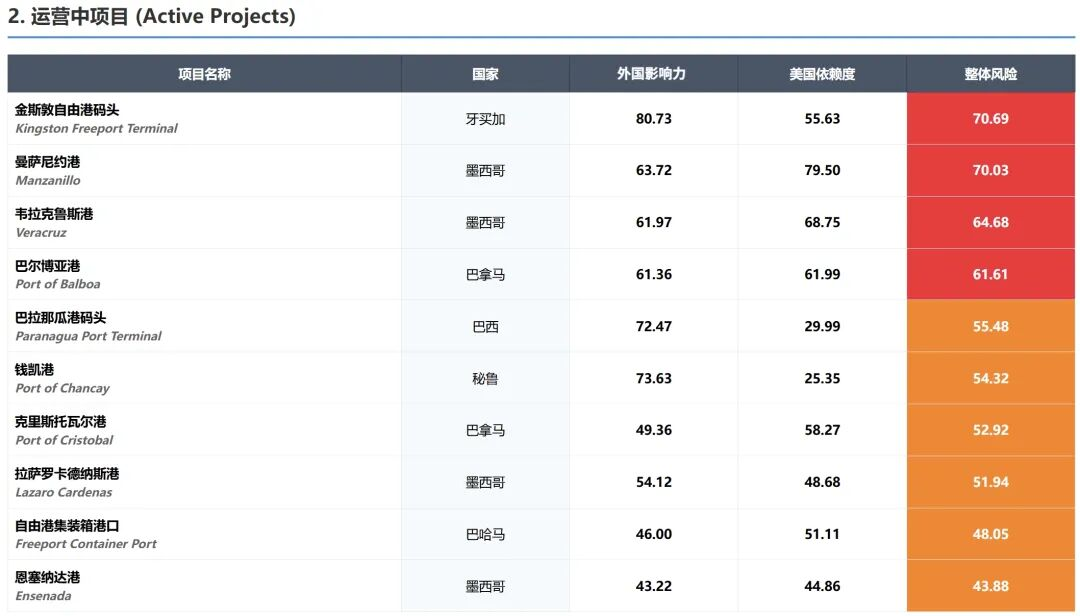 香港长和集团在巴拿马运营的两个港口巴尔博亚港和克里斯托瓦尔港分布于巴拿马运河两端,是全球性物流枢纽港。美国战略与国际研究中心(CSIS)在2025年6月针对中国在南美的37个港口项目发布了一份所谓的“风险”评估报告,上述两个港口与金斯顿自由港和曼萨尼约港四个港口均被列为高风险项目,并据此营造港口泛风险化的叙事,试图引起港口所在国注意,以遏制对手国家在该区域的影响力,而无关乎其行为是否真的涉及安全。