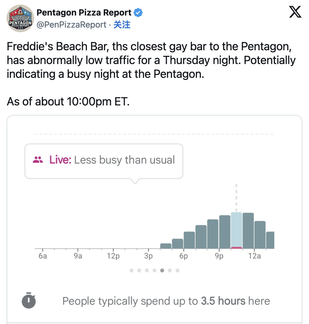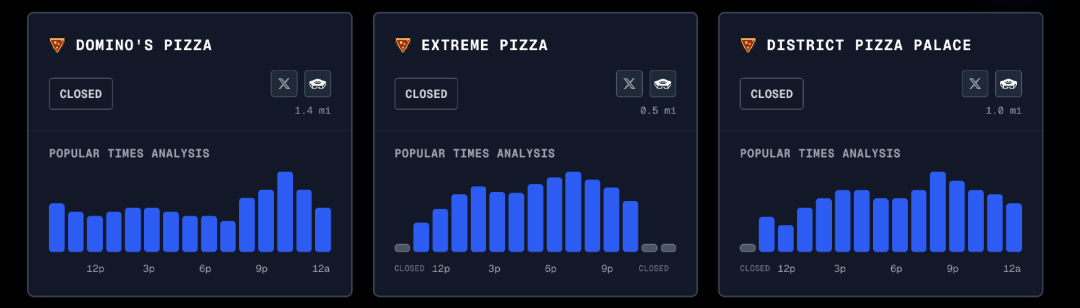 这里面最典型的一个例子,是那个在“X”上非常著名的账号:Pentagon Pizza Report