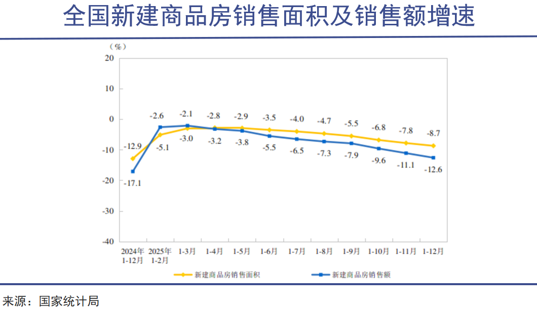 然而需要注意的是,豪宅狂飙并不能扭转整个行业的低迷。国家统计局数据显示,2025年,全国房地产开发投资增速、新建商品房销售面积及销售额、开发企业到位资金全部负增长。
