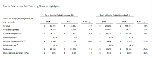 1月28日,Meta公布了2025财年第四财季的业绩。财报显示,Meta在第四财季Meta营收598.93美元,较去年同期增长24%;净利润为227.68亿美元,同比增长9%;摊薄后每股收益8.88美元,高于市场预期的8.23美元。