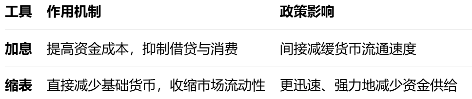 缩表和加息:都是“收水”,但力度不一样。
