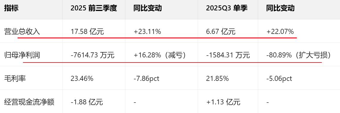 积成电子2025年前三季度收入增长23.11%,但是归母净利润亏损7614.73万元(同比减亏16.28%),Q3单季亏损1584.31万元(同比扩大80.89%),核心症结在于毛利率大幅下滑、新业务尚处投入期、应收账款高企拖累现金流与盈利、行业竞争加剧四大主因,叠加季节性与项目结算节奏影响,导致“增收不增利”格局持续。