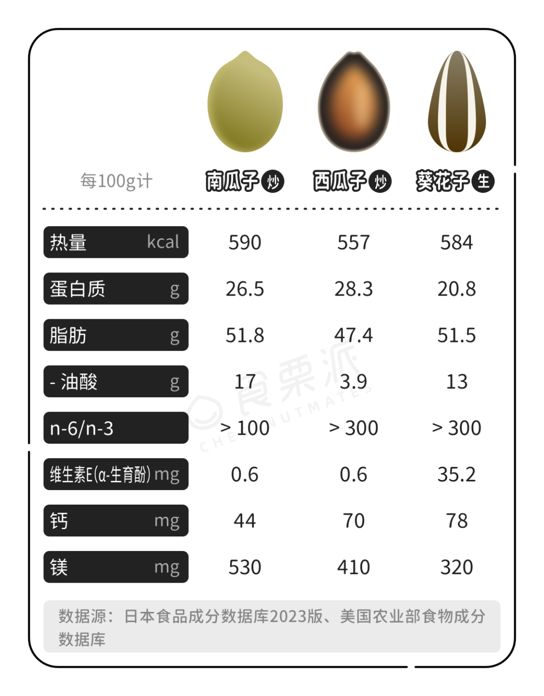过年常嗑的三种瓜子,我们对它们的品种不是太清楚,暂且看下研究数据大致有个了解吧。
