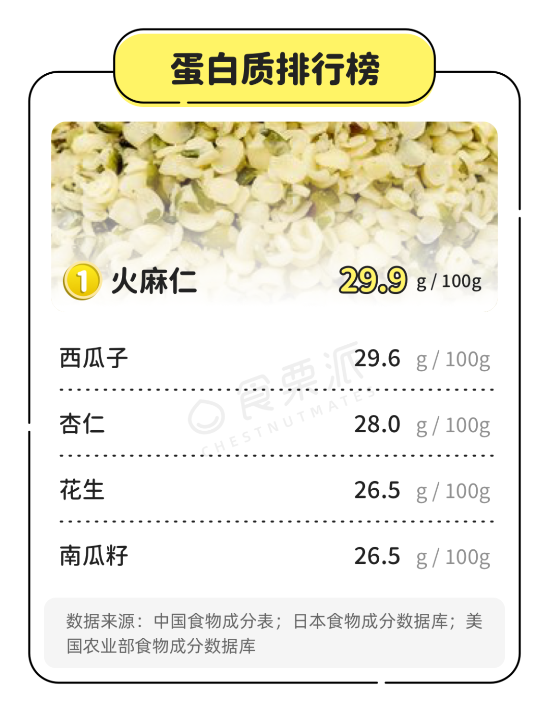 本文来自微信公众号: 食栗派ChestnutMates ,编辑:山楂,作者:食栗派,原文标题:《21种坚果的排名顺序,年货就囤它了!》