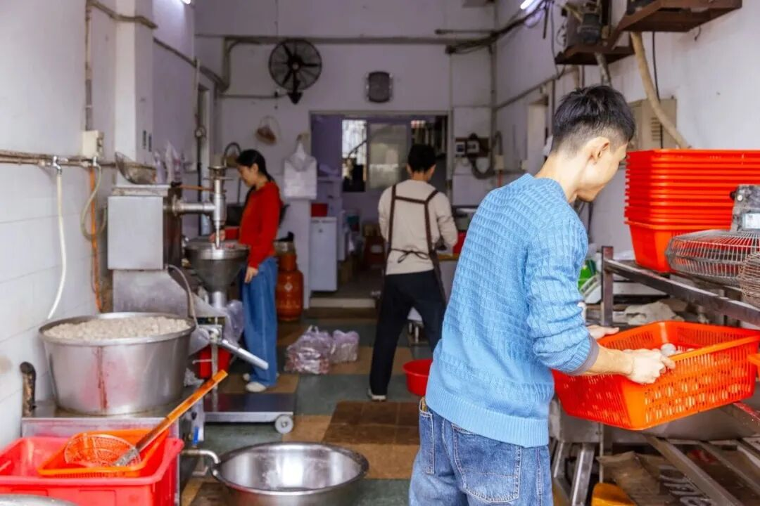 一个个抠细节,把陈志斌“逼”成了汕头牛肉丸的非遗传承人,也帮着他把整套牛肉丸工序,切割成16个可重复动作。“把动作拆解出来,就容易培养动作标准的熟练工,几个熟练工组合起来,就是一个大师。”