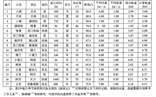 北京大学的邓辉教授经考证得出郑和船队下西洋的真正出发港是福建长乐,这里正是亚热带季风的稳定影响地区。同时,船队下西洋的往返周期也体现出充分利用季风的考量。整体来说,在航线的确定和候风点的选择上,都充分考虑了低纬度地区季风的变化特点,证明了宝船借助季风作为航行主动力[11]。