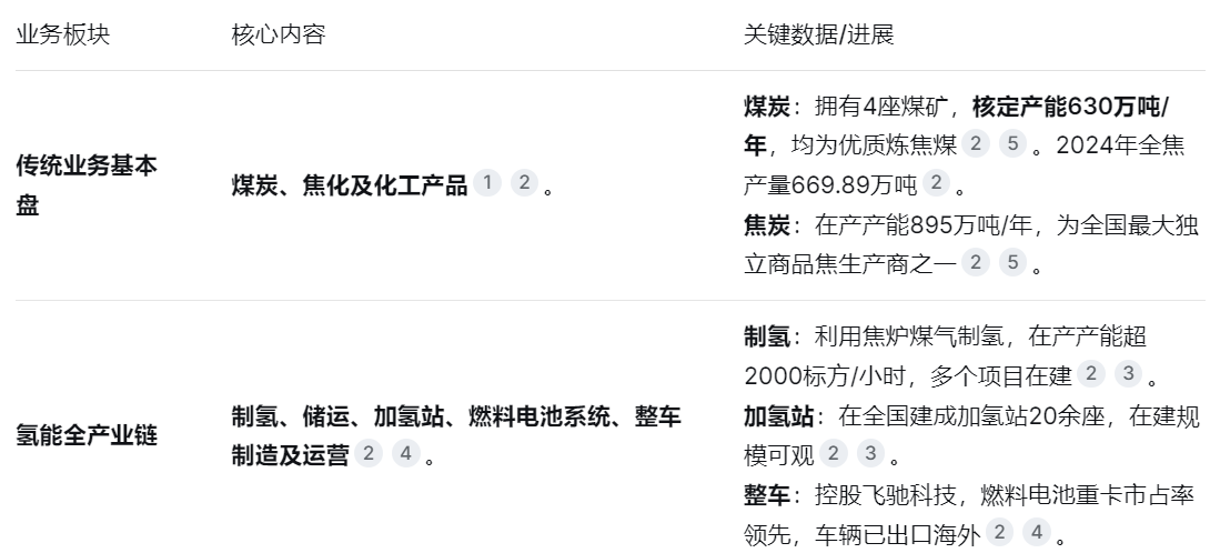 独特的“煤-焦-气-化-氢”一体化产业链:公司的核心优势在于利用炼焦过程中产生的富氢焦炉煤气,低成本制备高纯氢气。这使其氢能业务与传统焦化主业形成深度循环经济模式,是目前公司氢能战略的基石。