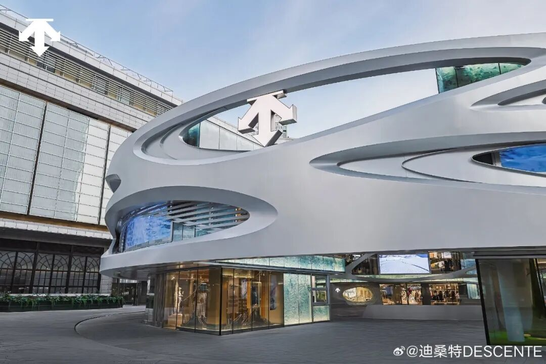 迪桑特外观以及在北京环贸开设的「未来之城」全球旗舰店,不仅接手原阿玛尼旗舰店铺位,其标志性的「莫比乌斯环」设计,与LV打造上海“路易号”邮轮的设计思路异曲同工。两者通过构建奢侈品式的专属设计标识,衔接品牌高端化的定位与消费体验。