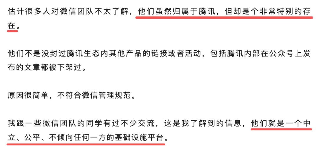 微信的底色是工具,且已经成了一个国民级的基础工具,它的存在已经超越了一家公司的商业产品,所以很多时候也不代表公司级的意志了。