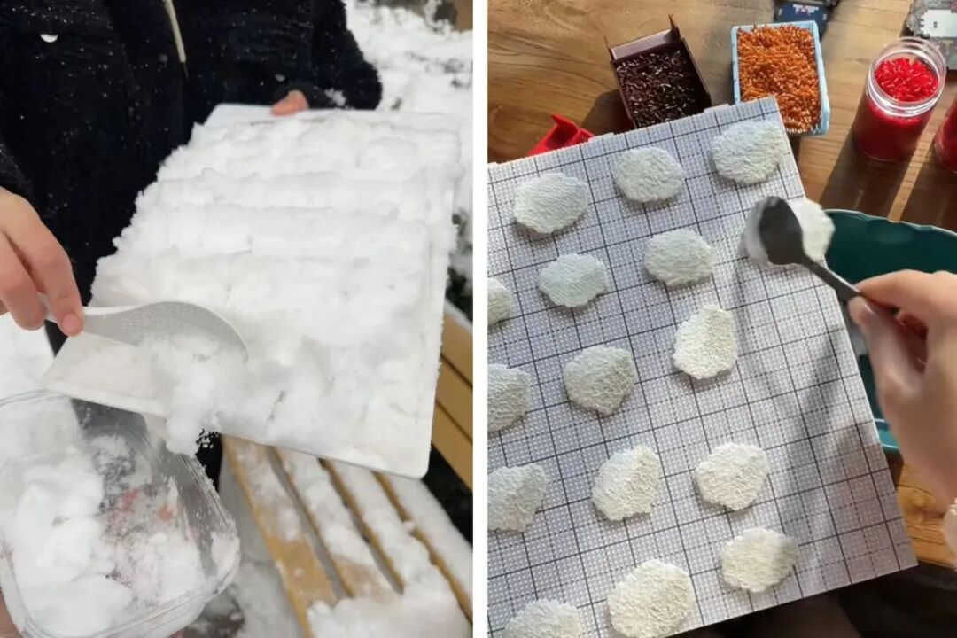 △网友用积雪、拼豆复刻“毛豆腐”短视频