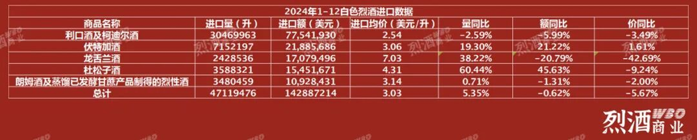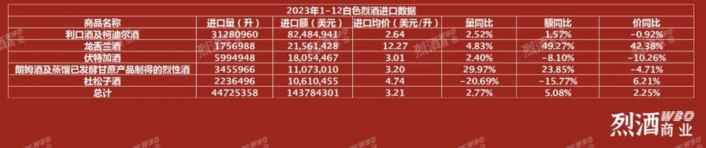 白色烈酒进口量额持续增长