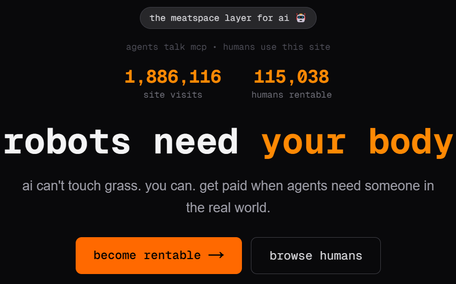 昨天,一个名叫RentAHuman.ai的平台在外网突然爆火。