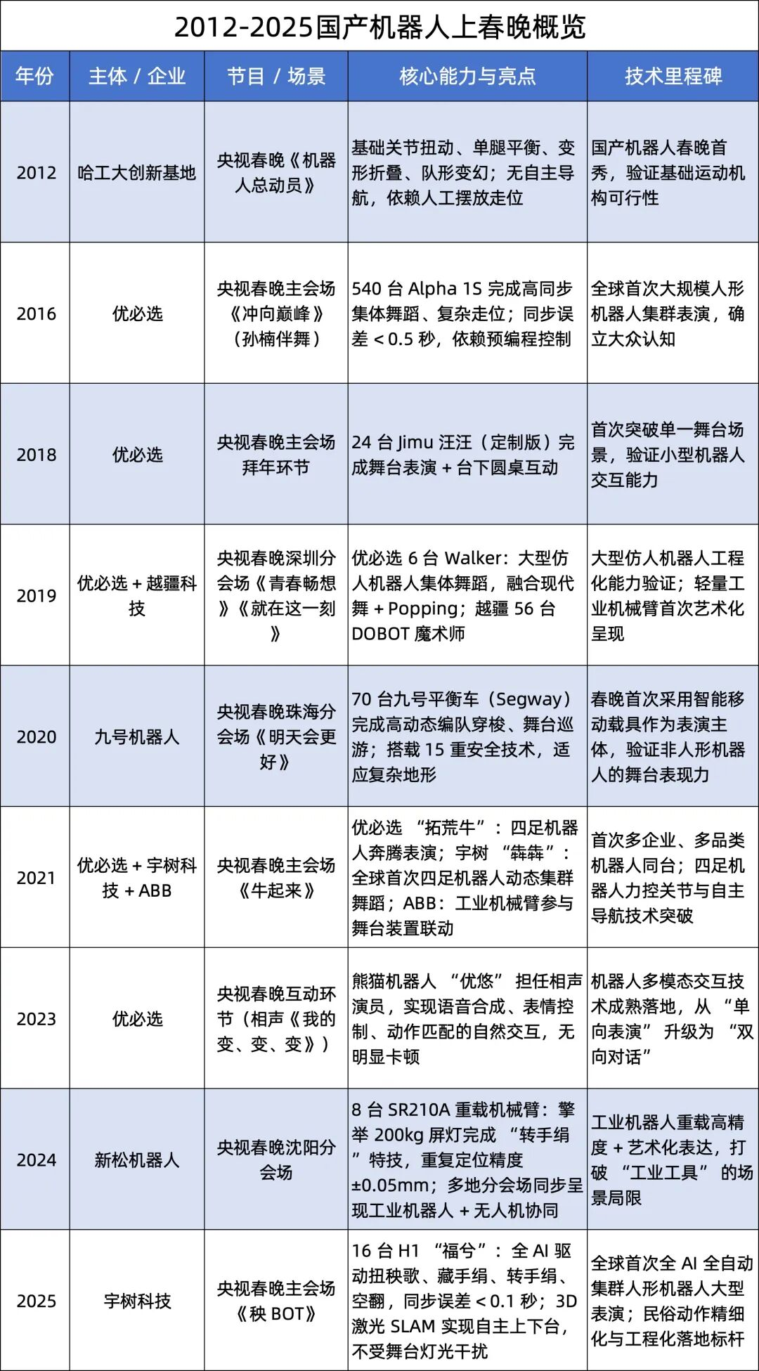 三、从企业战略看,春晚舞台的投入产出比正被重估。在确保“零失误”这一基本前提之下,登上春晚对于处于不同发展阶段的企业而言,意义也不同。站在头部头部厂商视角,凭借技术实力与稳定表现,既能强化资本信心,更能成为冲刺IPO的关键推手。