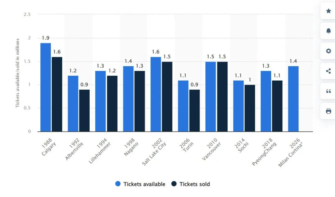 当然,即便有着30万张余票的滞销,120万张的销量仍然是一个相当高的基数——米兰冬奥会的票务表现也享受到了不少加成。