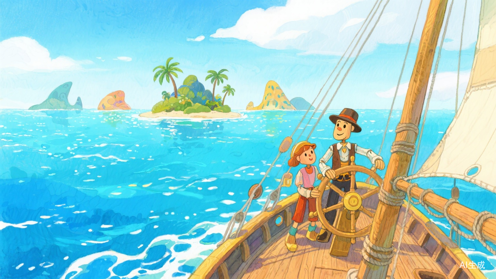 重要的是永远在路上。天空一碧如洗,海盗们在波光粼粼的新世界,扬起激跃的浪花。旅途的风景总是诗情的写意的,满载着对辽远天空与深邃海洋的向往。