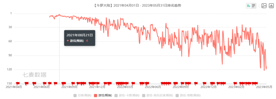 这个观点,其实还有其他产品已经印证过,这个产品就是斗罗IP下的《武魂觉醒》和《魂师对决》。同《境界刀鸣》一样,在《武魂觉醒》出来之前,斗罗IP内都是一些质量参差不齐的纯数值页游,而当时《武魂觉醒》横空出世,凭借的着不错的立绘和经过验证的闪烁之光like模式,获得了非常好的商业化成绩。(2021年4-6月一直维持在畅销榜前20)