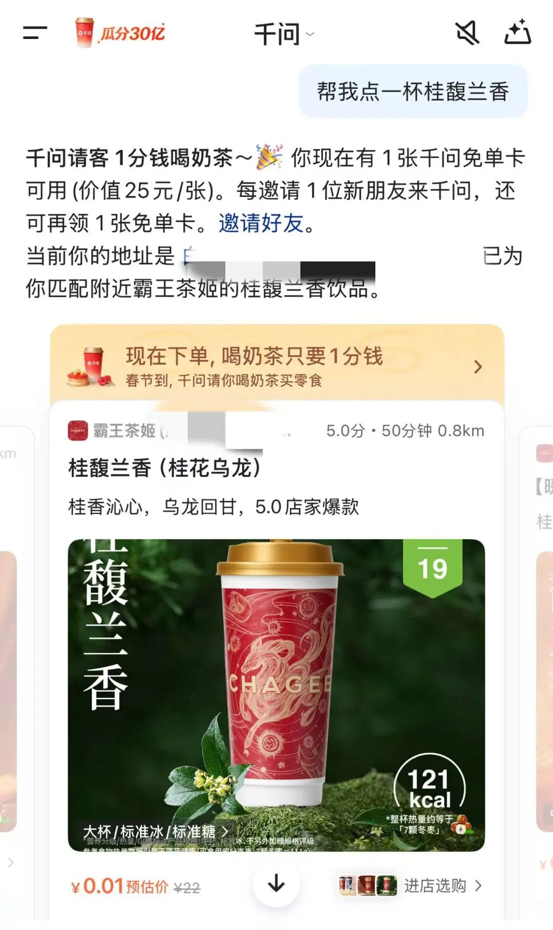 千问则用一杯免费的奶茶,培养用户一个全新的习惯——有事儿直接吩咐AI去干。