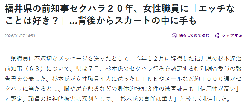 另一方面,他面临着一个极其复杂的烂摊子:前任知事因恶劣的性骚扰丑闻引咎辞职,福井县民众的信任度已跌至谷底。