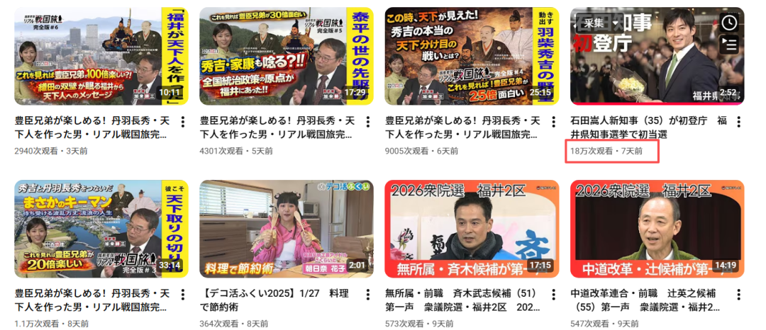 原本沉闷的县政新闻也因为他,播放量一下就超过18万,迅速成为福井TV频道这几个月最爆款的视频。