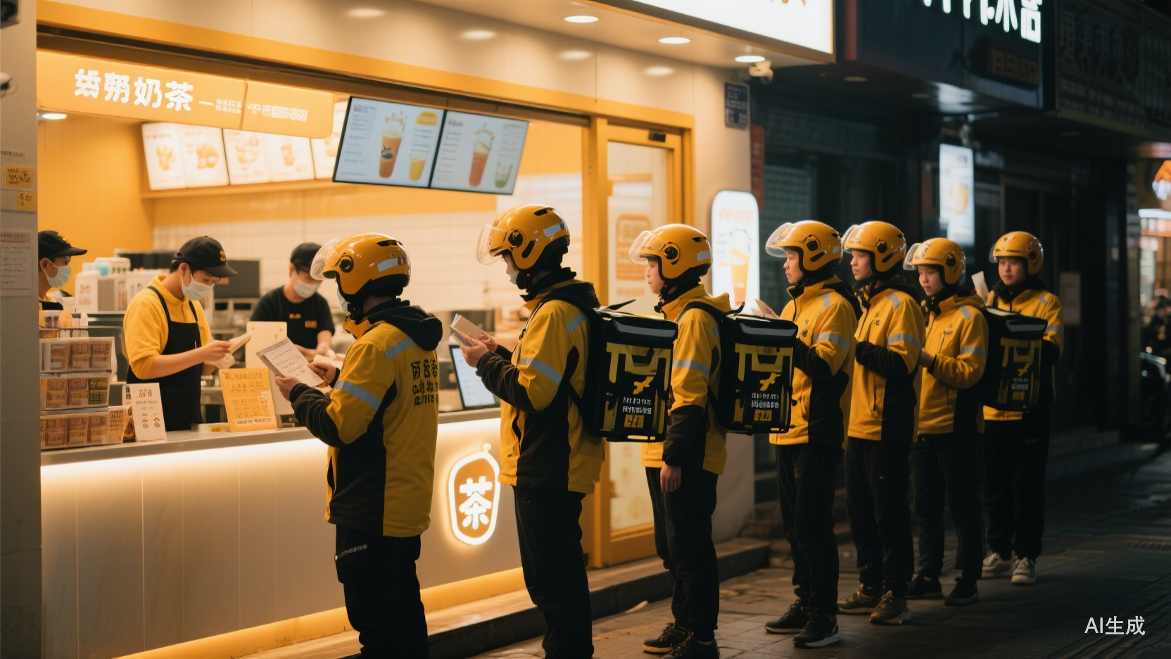我的同事园长在电梯里偶遇一位拎着奶茶袋子的闪购外卖员,外卖小哥提醒他,今天1分钱就可以在淘宝闪购点奶茶,一上午全是奶茶单,马上要送不过来了,建议他试试。