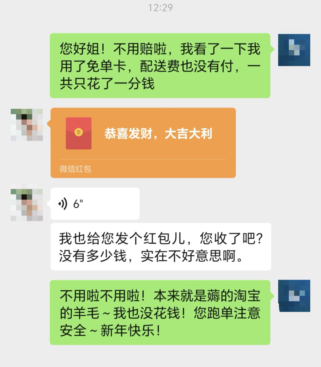 另有同事下单的奶茶在骑手送餐途中被偷,骑手打电话赔礼道歉,加了她微信说一定要赔偿损失,同事慷慨表示本来就有人请客,首次婉拒他人红包。
