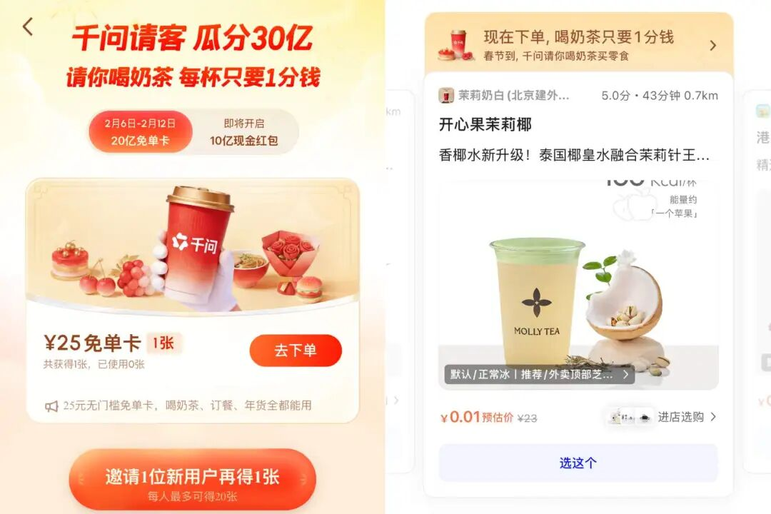 一时间分不清是AI大战,还是第二轮外卖大战——揉揉眼睛,去年夏日外卖的爆单场面重现。时至冬日,免费喝奶茶的杀伤力依然强大,千问迅速登上下载榜首位,服务器很快被用户挤爆。