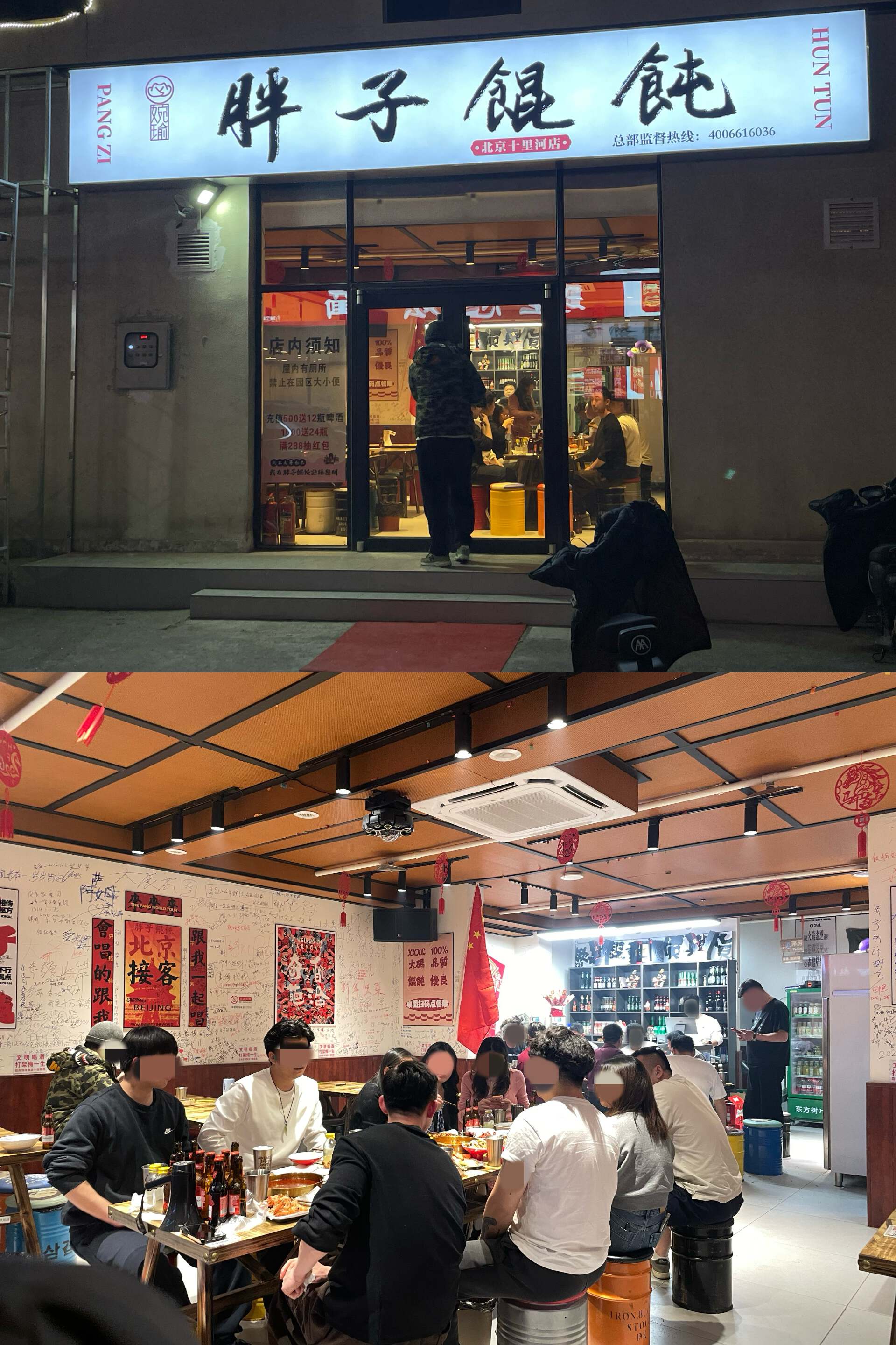 北京其中一家馄饨酒馆的位置在十里河,附近是城中村的餐饮一条街。我走进去的时候,店里正在播放抖音热曲《用背脊唱情歌》。