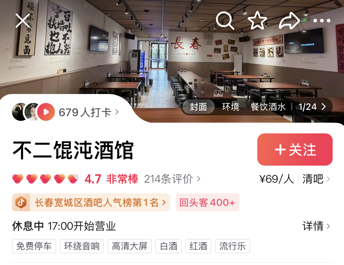 甚至连体育界也能和小酒馆联动,吉林最近有一家科比粉丝经营的“凌晨四点的24号小酒馆”,目前被视为馄饨酒馆的最大竞争者。网友全在评论区急着问:“进门会送冰红茶吗?”