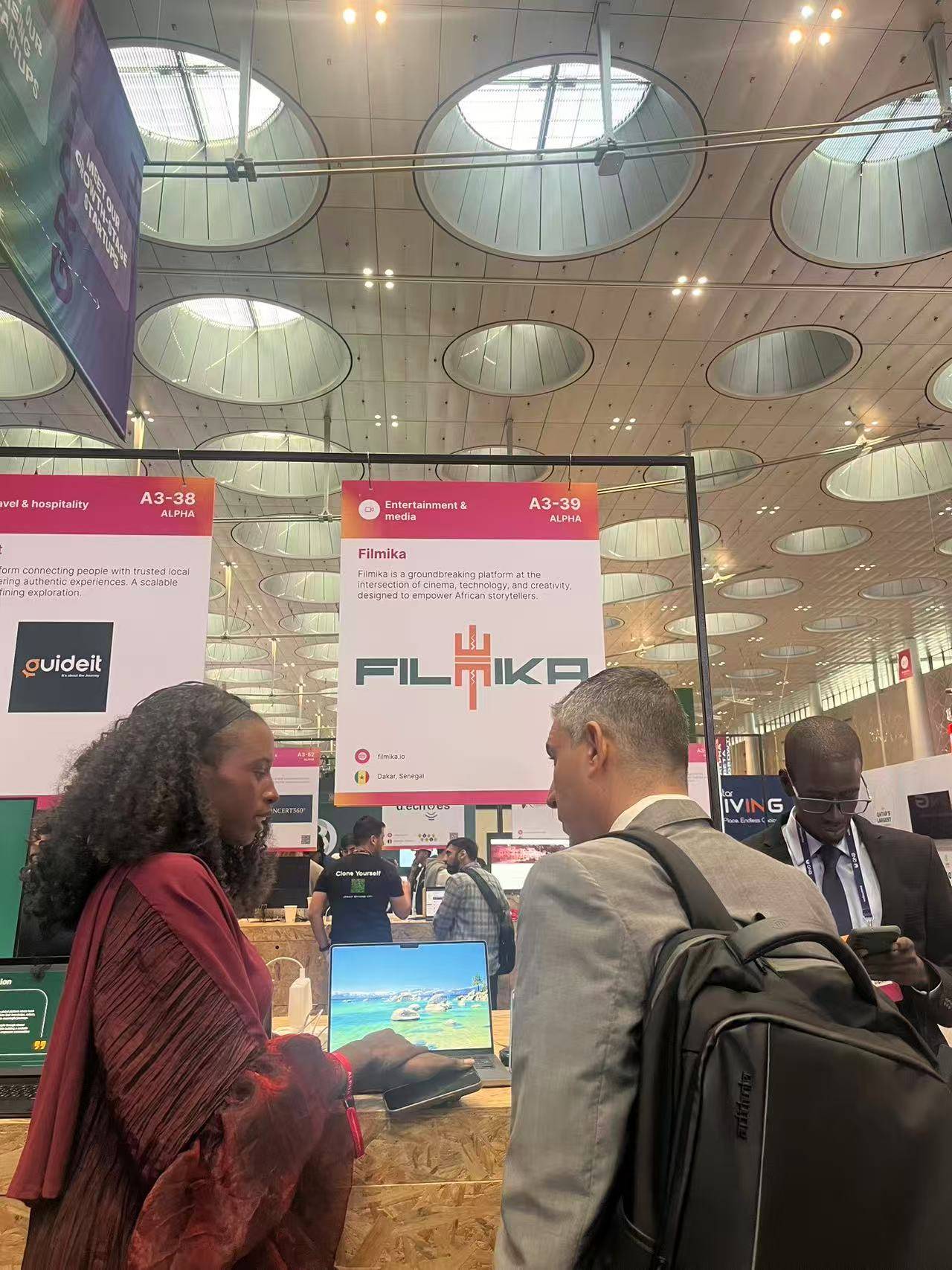 还有一位来自塞内加尔身着红色长袍的女性,做了一个非洲版的B站,在这个平台上,电影人、制片人、编剧可以通过这个平台发布内容,同时还可以通过平台与不同的人建立联系,试图用一种去中心化的社区模式,重塑非洲的内容生态。
