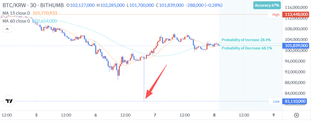 在本周的加密货币巨震期间,韩国第二大加密货币交易所Bithumb的比特币挂牌价一度被砸到8111万韩元,相当于5.5万美元,显著低于市场价格。