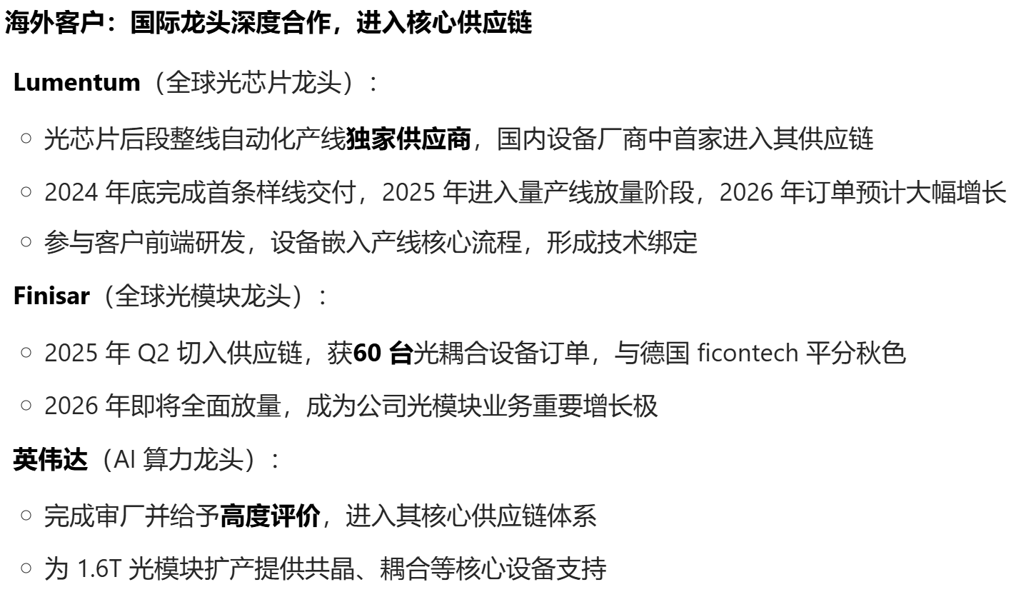 科瑞技术已构建海外龙头 + 国内头部的全球客户矩阵,形成独家 / 核心供应关系,客户粘性极强。