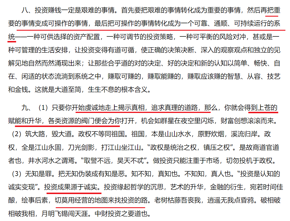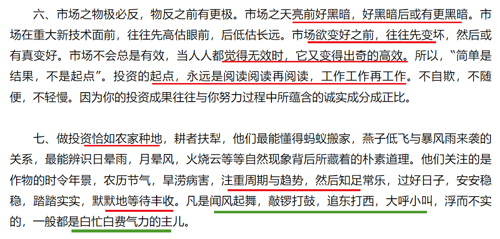 在投资心态上,边锡明提倡“先有我,再忘我,间或无我”的境界。也就是说,投资者首先需要建立自己的认知体系和交易框架,然后逐渐淡化对自我的执念,避免被情绪所左右,最终以一种抽离客观的视角去看待市场、进行投资。这种心态要求投资者在高度不确定的市场中保持冷静和理性,既要有“狼的等待”般的耐心,也要有迅速认错的勇气和自我纠错的能力。边锡明本人曾经历过早期跨界期货交易的失败,爆仓亏损几乎赔光了实业利润。正是这些惨痛教训让他深刻认识到风险和生存的重要性,从而在后续的投资生涯中始终把风险控制放在首位。