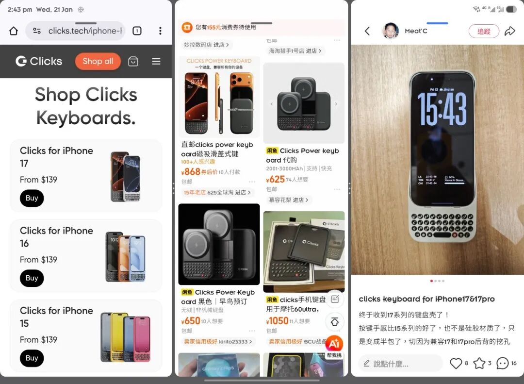▲三折叠的经典使用场景:左侧查询,中间比价,右侧评论